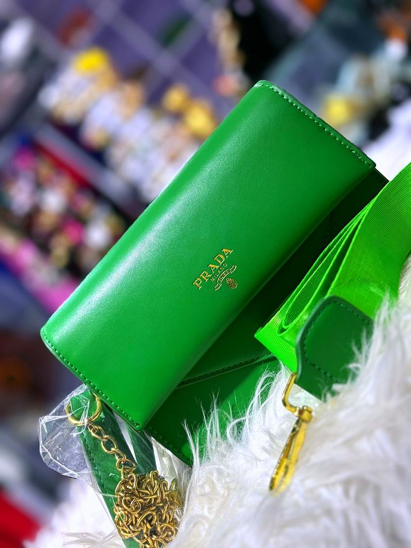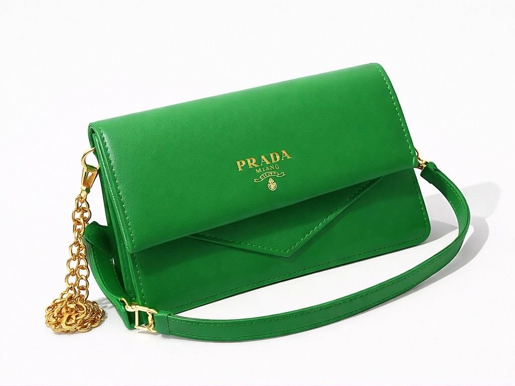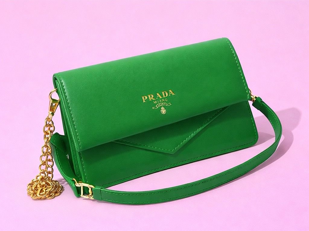 Crafted in smooth emerald green leather with gold-tone hardware, this envelope-style shoulder bag delivers timeless elegance in a compact silhouette. Featuring a refined flap design, detachable strap, and polished chain detail, it transitions effortlessly from day to evening while adding a bold, luxurious statement to any outfit.